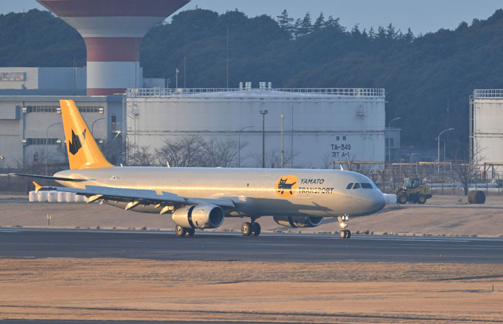 成田空港A滑走路に着陸するヤマトのA321ceo P2F貨物機2号機=24年2月8日 PHOTO: Tadayuki YOSHIKAWA/Aviation Wire