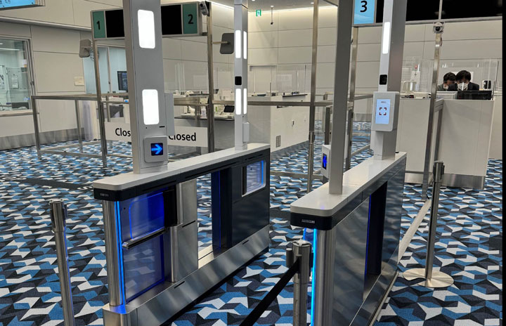 羽田第2ターミナルで国が実施している入国審査・税関申告の実証実験に採用されたパナソニック コネクトの顔認証改札機(同社提供)