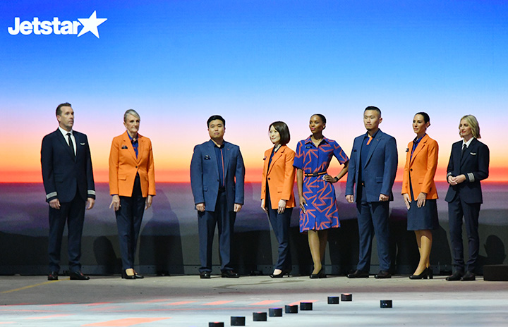 新制服を着用するジェットスター・グループの社員=24年2月29日 PHOTO: Yusuke KOHASE/Aviation Wire