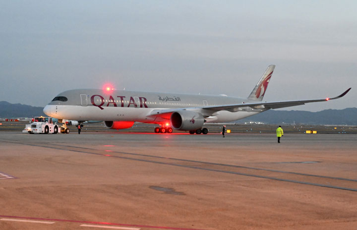 関空を出発するカタール航空のドーハ行き再開初便QR803便=24年3月1日 PHOTO: Tadayuki YOSHIKAWA/Aviation Wire