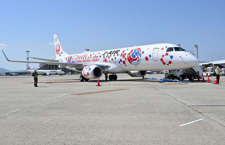 伊丹空港で出発を待つJALミャクミャクJETチャーター=24年4月14日 PHOTO: Tadayuki YOSHIKAWA/Aviation Wire