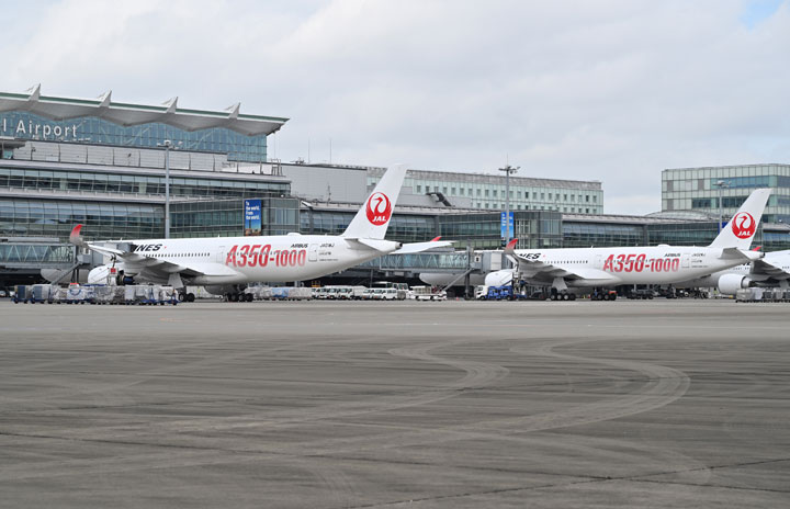 羽田空港に並ぶJALのA350-1000初号機と2号機=24年4月17日 PHOTO: Tadayuki YOSHIKAWA/Aviation Wire