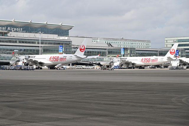 羽田空港に並ぶJALのA350-1000初号機と2号機=24年4月17日 PHOTO: Tadayuki YOSHIKAWA/Aviation Wire