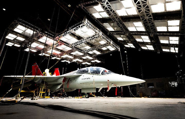エグリン空軍基地で人工気候室による極限気候試験を受けるT-7A試験機APT-3(同基地提供)