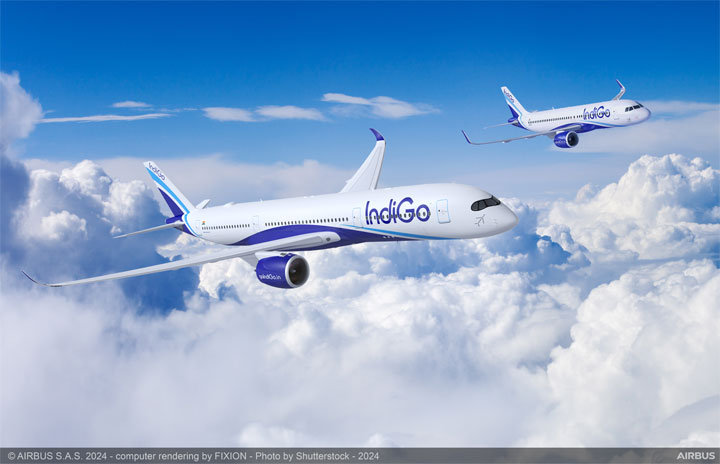 インディゴのA350-900(左)とA320neoのイメージ(エアバス提供)