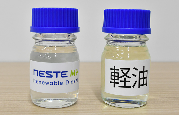 ANAが実証実験で使用するRD(左)と従来の軽油=24年5月9日 PHOTO: Yusuke KOHASE/Aviation Wire