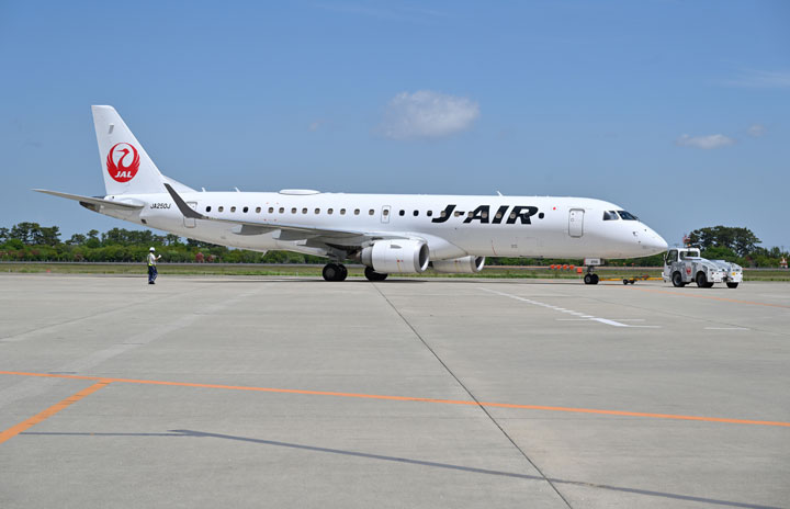 仙台空港を出発するジェイエアの伊丹行きJL2204便=24年5月14日 PHOTO: Tadayuki YOSHIKAWA/Aviation Wire