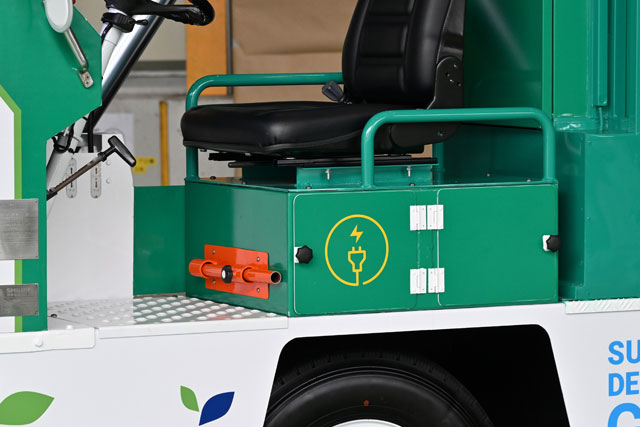 全日空モーターサービスがディーゼル車からEV化したベルトローダー=24年5月20日 PHOTO: Tadayuki YOSHIKAWA/Aviation Wire