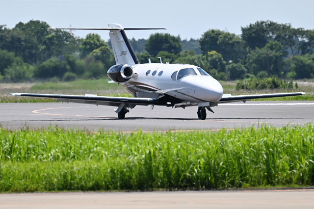 茨城空港に到着するマイクロジェットが運航する羽田発のビジネスジェット「セスナ サイテーション ムスタング」=24年5月25日 PHOTO: Tadayuki YOSHIKAWA/Aviation Wire