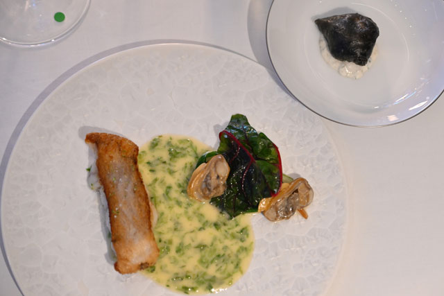 魚料理「若狭マハタのポワレ 青のりのブール・ブラン」=24年6月 PHOTO: Tadayuki YOSHIKAWA/Aviation Wire