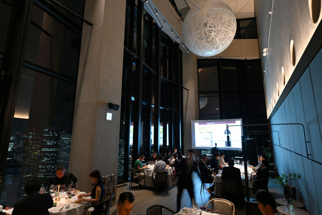 Restaurant Bellustarで開かれたJAL国際線ファーストクラスのワインを楽しむサントリーのメイカーズディナー=24年6月 PHOTO: Tadayuki YOSHIKAWA/Aviation Wire