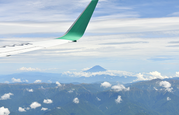 スプリング・ジャパンの周遊フライトIJ9174便から見た夏の富士山=24年6月24日 PHOTO: Yusuke KOHASE/Aviation Wire