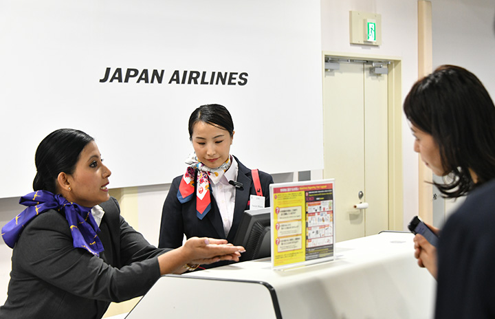 JALの「空港ハンドリング プロフェッショナルコンテスト」でロールプレイに挑むダラス空港チーム=24年6月27日 PHOTO: Yusuke KOHASE/Aviation Wire