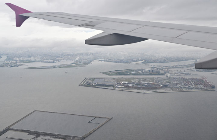 大阪万博会場を付近を飛び関空へ降下する奄美発MM206便=24年7月1日 PHOTO: Tadayuki YOSHIKAWA/Aviation Wire