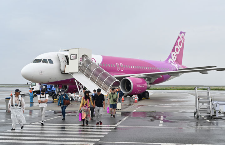 関空に到着した奄美発再開初便MM206便=24年7月1日 PHOTO: Tadayuki YOSHIKAWA/Aviation Wire