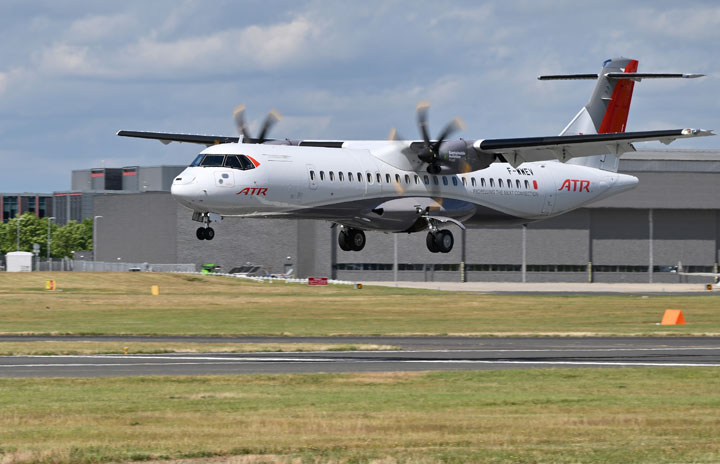 ファンボロー航空ショーで飛行展示を終えて着陸するATRのATR72-600=24年7月22日 PHOTO: Tadayuki YOSHIKAWA/Aviation Wire