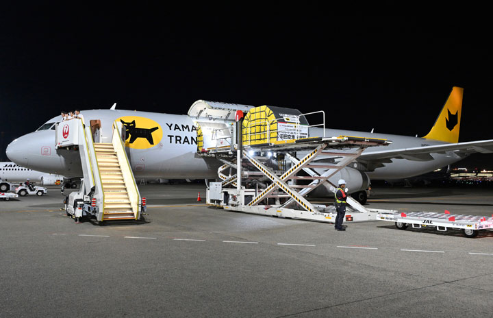 羽田空港に到着し前方貨物室から積荷が降ろされるヤマトのA321P2F羽田初便となった札幌発IJ410便=24年8月1日 PHOTO: Tadayuki YOSHIKAWA/Aviation Wire