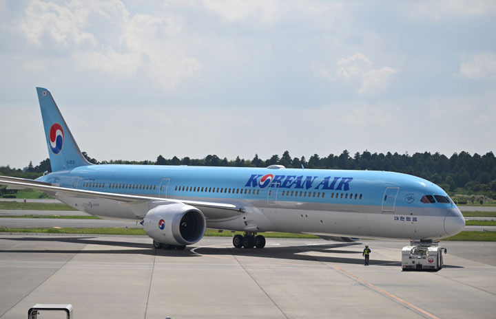 成田空港を出発する大韓航空787-10初号機によるソウル行きKE704便=24年8月2日 PHOTO: Tadayuki YOSHIKAWA/Aviation Wire