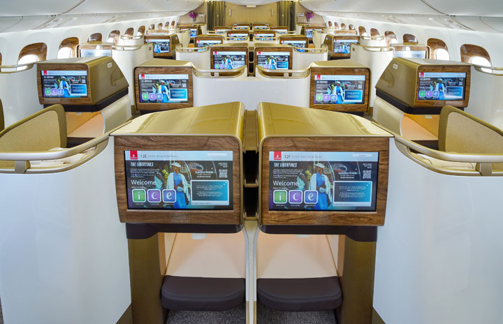 エミレーツ航空の777-300ER新仕様機の新ビジネスクラス(同社提供)