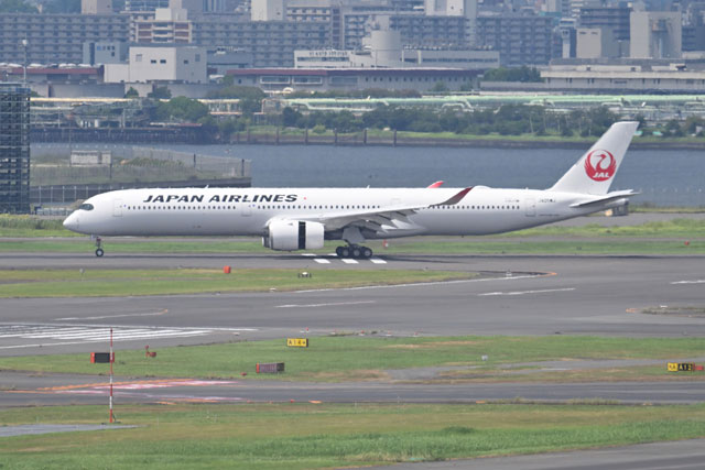 羽田B滑走路に着陸するJALのA350-1000 5号機=24年8月11日 PHOTO: Tadayuki YOSHIKAWA/Aviation Wire
