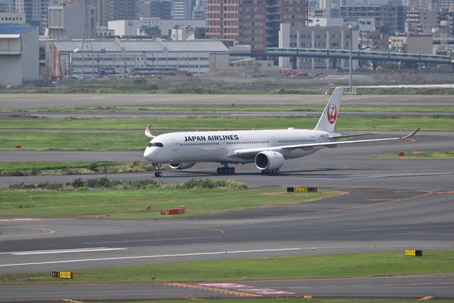羽田空港のスポットへ向かうJALのA350-1000 5号機=24年8月11日 PHOTO: Tadayuki YOSHIKAWA/Aviation Wire