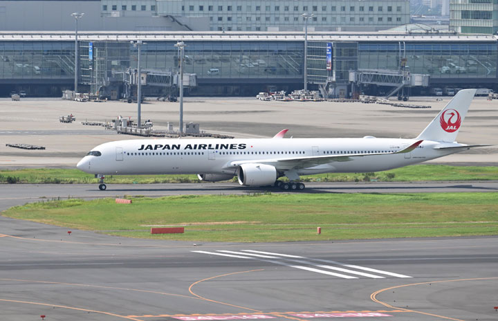 羽田空港のスポットへ向かうJALのA350-1000 5号機=24年8月11日 PHOTO: Tadayuki YOSHIKAWA/Aviation Wire