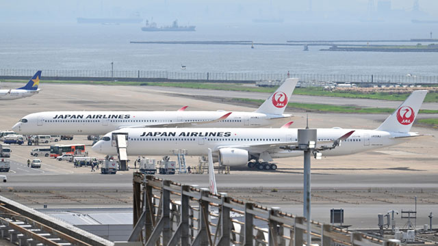 羽田空港に到着したJALのA350-1000 5号機(手前)と1日に到着した4号機=24年8月11日 PHOTO: Tadayuki YOSHIKAWA/Aviation Wire