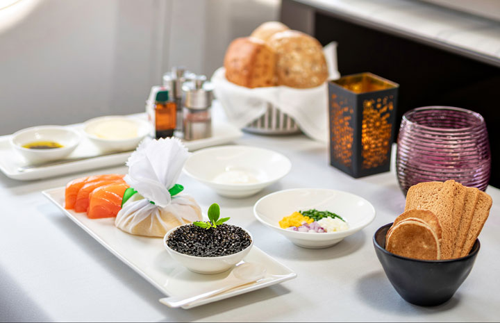 キャビアを13路線のビジネスクラスで提供するカタール航空(同社提供)