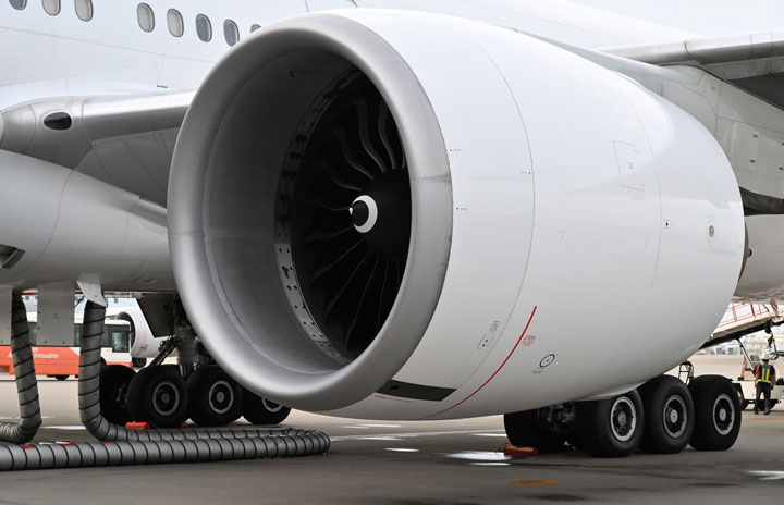 羽田空港に到着したJAL初の777-300ER退役機となるJA734JのエンジンGE90-115B=24年8月19日 PHOTO: Tadayuki YOSHIKAWA/Aviation Wire
