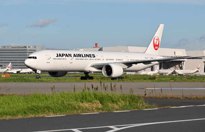 羽田空港に到着するJALの777-300ER JA734Jによるシドニー発JL52便=24年8月20日 PHOTO: Tadayuki YOSHIKAWA/Aviation Wire