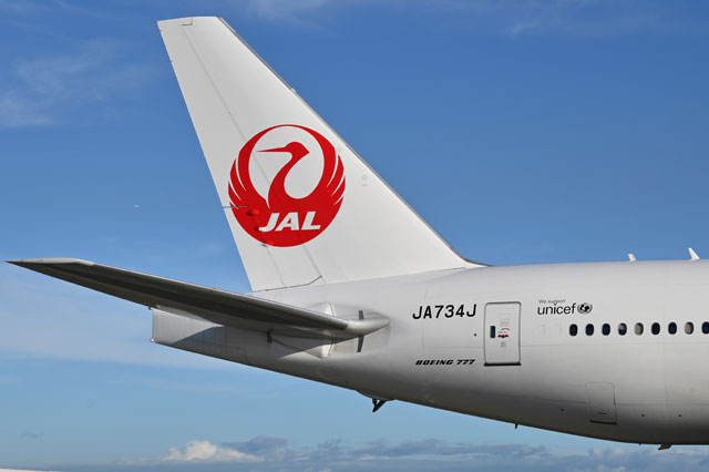 羽田空港に到着するJALの777-300ER JA734Jによるシドニー発JL52便=24年8月20日 PHOTO: Tadayuki YOSHIKAWA/Aviation Wire