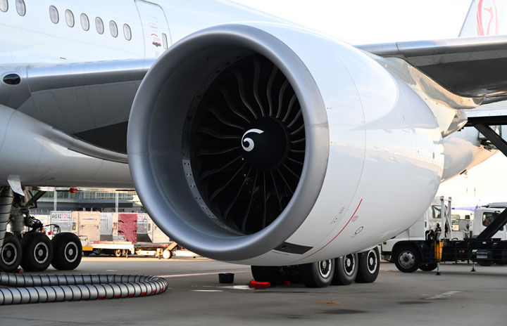 羽田空港に到着したJAL初の777-300ER退役機となったJA734JのエンジンGE90-115B=24年8月20日 PHOTO: Tadayuki YOSHIKAWA/Aviation Wire