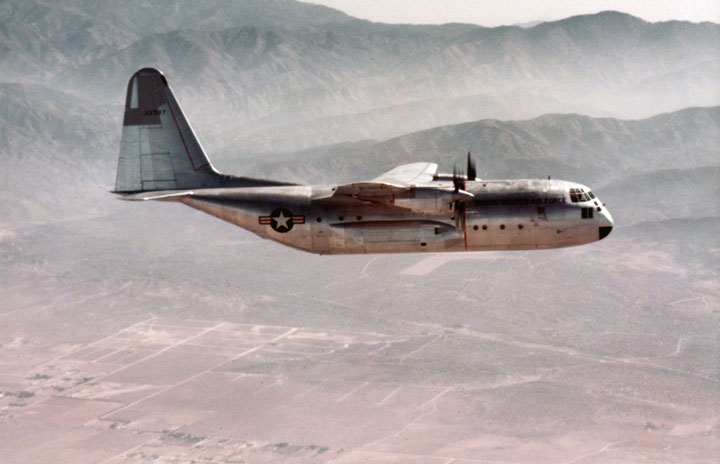 1954年8月23日に初飛行するYC-130(ロッキード・マーチン提供)