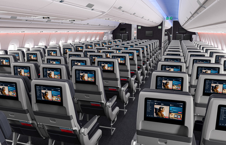 新内装を施したデルタ航空のA350エコノミークラス「メインキャビン」(同社提供)