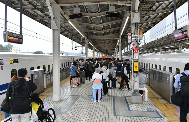 広島地方の大雨により運転を見合わせてごった返す東海道新幹線の新横浜駅=24年11月2日午前10時26分 PHOTO: Yusuke KOHASE/Aviation Wire