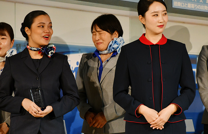 ANAの空港接客コンテストでグランプリを獲得し表情を変える能登空港の加波さん=24年12月11日 PHOTO: Yusuke KOHASE/Aviation Wire