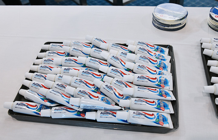 ANAの「EXPO2025 ANA JET」初便の乗客にプレゼントしたアクアフレッシュ=24年12月12日 PHOTO: Yusuke KOHASE/Aviation Wire