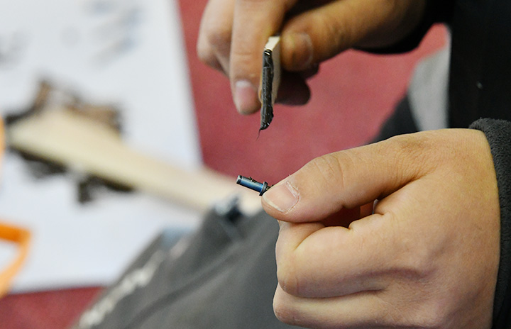 A350-1000 8号機JA08WJの識別板取り付けネジに接着剤を塗るJALの整備士=24年12月16日 PHOTO: Yusuke KOHASE/Aviation Wire