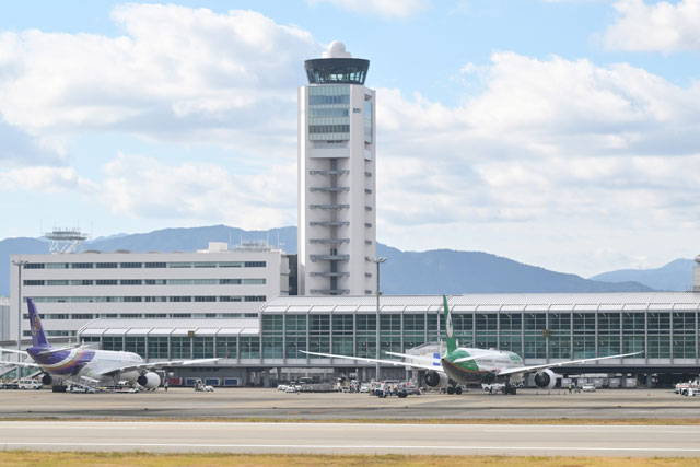 福岡空港の国際線ターミナル横に建てられた新管制塔=24年12月23日 PHOTO: Tadayuki YOSHIKAWA/Aviation Wire