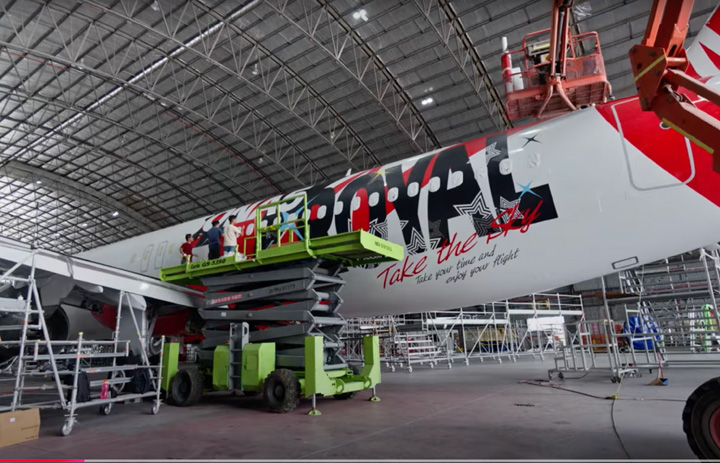 セガが公開したエアアジアのA320に施すペルソナ5のデザインの様子(YouTubeから)