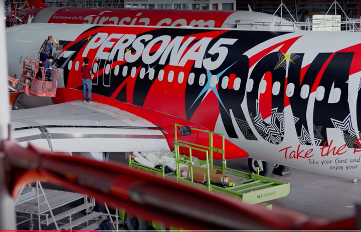 セガが公開したエアアジアのA320に施すペルソナ5のデザインの様子(YouTubeから)