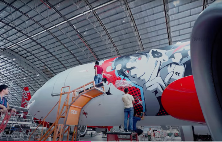 セガが公開したエアアジアのA320に施すペルソナ5のデザインの様子(YouTubeから)