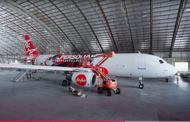 セガが公開したエアアジアのA320に施すペルソナ5のデザインの様子(YouTubeから)