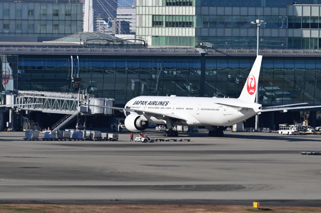 羽田空港で114番スポットで出発を待つJALの777-300ERによるロンドン行きJL43便=25年1月1日 PHOTO: Tadayuki YOSHIKAWA/Aviation Wire