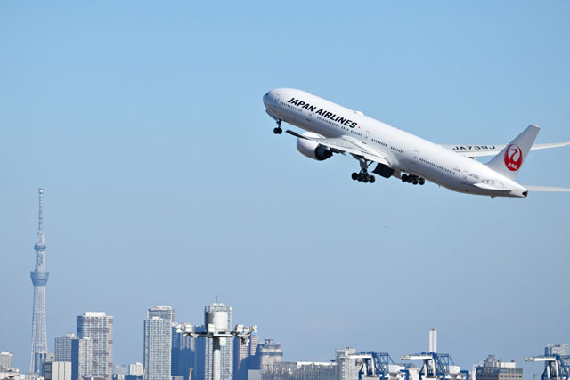 羽田空港を離陸しロンドンへ向かうJALの777-300ERによるJL43便=25年1月1日 PHOTO: Tadayuki YOSHIKAWA/Aviation Wire
