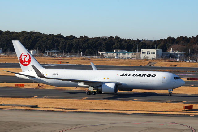 成田空港に到着するJALの767-300BCF 3号機JA621J=25年1月17日 PHOTO: Youichi KOKUBO/Aviation Wire