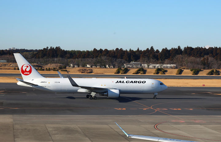 成田空港に到着するJALの767-300BCF 3号機JA621J=25年1月17日 PHOTO: Youichi KOKUBO/Aviation Wire