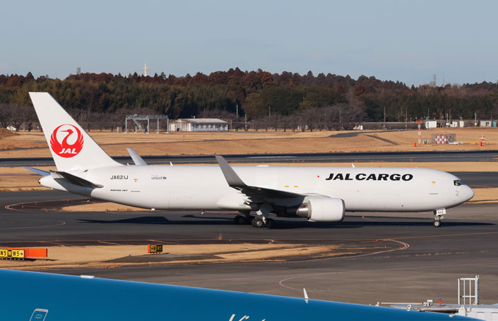 成田空港に到着するJALの767-300BCF 3号機JA621J=25年1月17日 PHOTO: Youichi KOKUBO/Aviation Wire