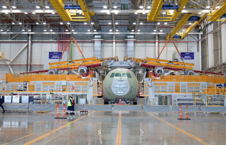 最終組立が進むインドネシア空軍向けのA400M初号機(エアバス提供)