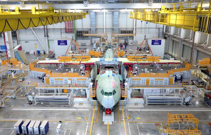 最終組立が進むインドネシア空軍向けのA400M初号機(エアバス提供)